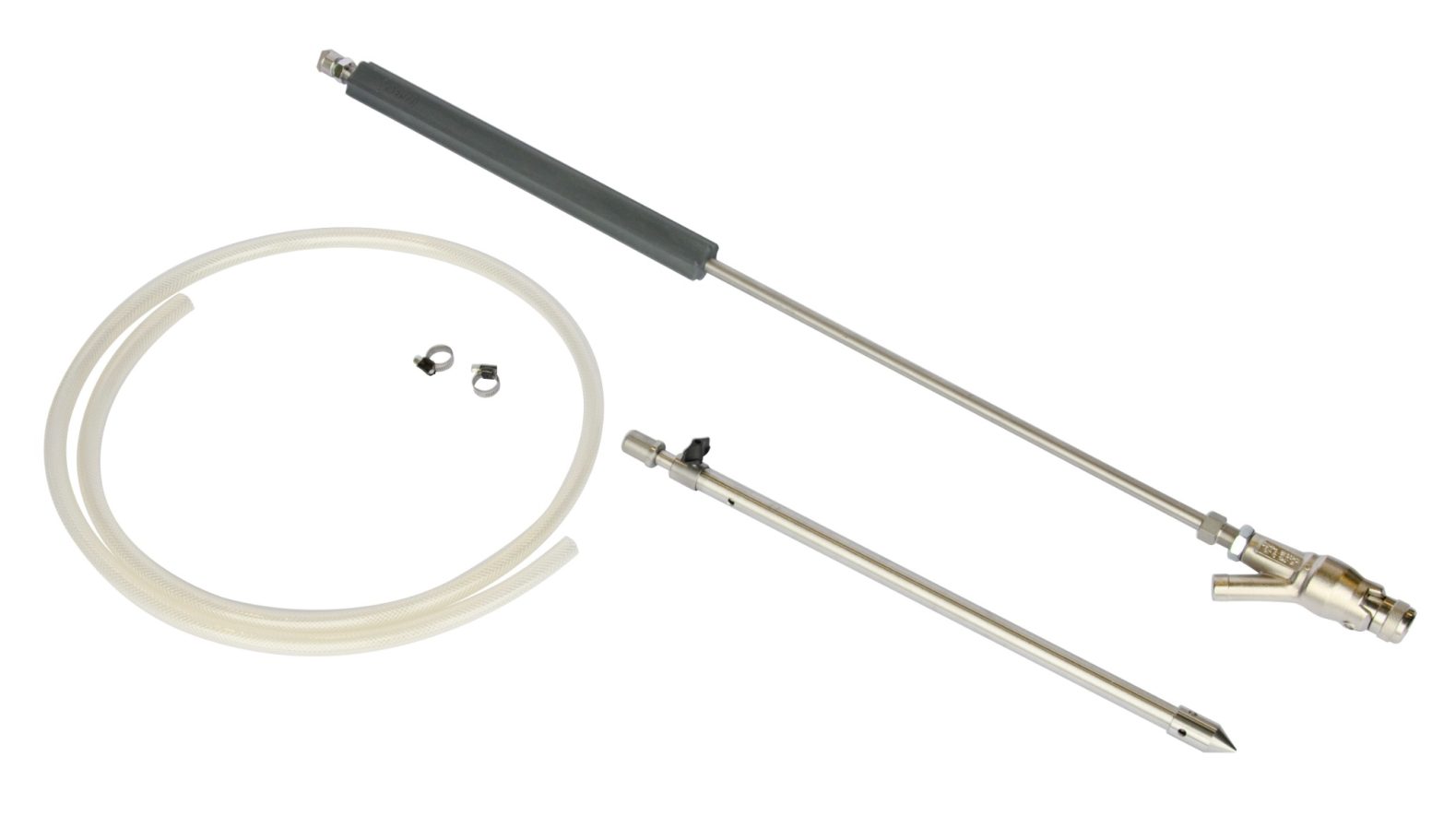- Lanza de granallado de alta presión con boquilla de chorro plano y manguera de aspiración adecuada, para una presión de funcionamiento de ≤ 500 bar 1.258.229.15xxx